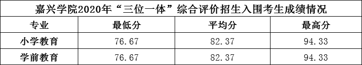 嘉兴学院2020年“三位一体”综合评价招生入围考生成绩情况