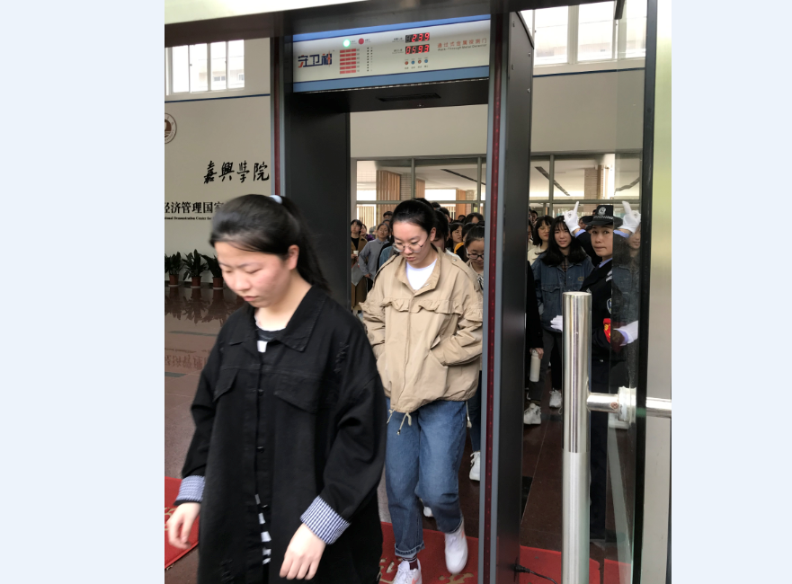 为严肃考风纪律,学校今年加大了安检力度,全考区实行封闭管理,启用标准化考场,考场、候考区实行全方位信号屏蔽,并增设了安检门和金属探测仪监测环节,考生、考官及工作人员进入考区,必须经过安检、身份核验后方可进入。考生、考官实施“双盲抽签”,面试评委的考场号随机抽签确定,考生参加考试考场号、顺序号随机抽签确定,实行全程录音录像,确保综合素质测试工作在阳光下进行。