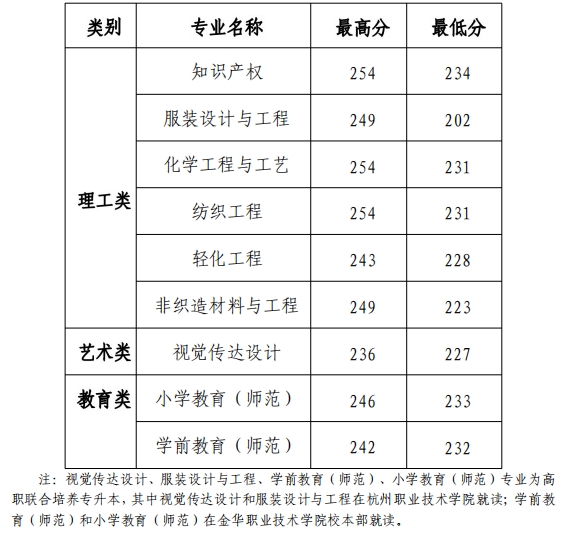 2023年浙江省普通高校专升本招生平行志愿首轮已投档。嘉兴学院投档录取情况如下: