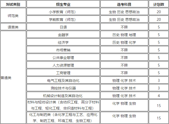 总计划数115名,均为普通类提前录取。具体招生专业、选考科目、计划数如下表: